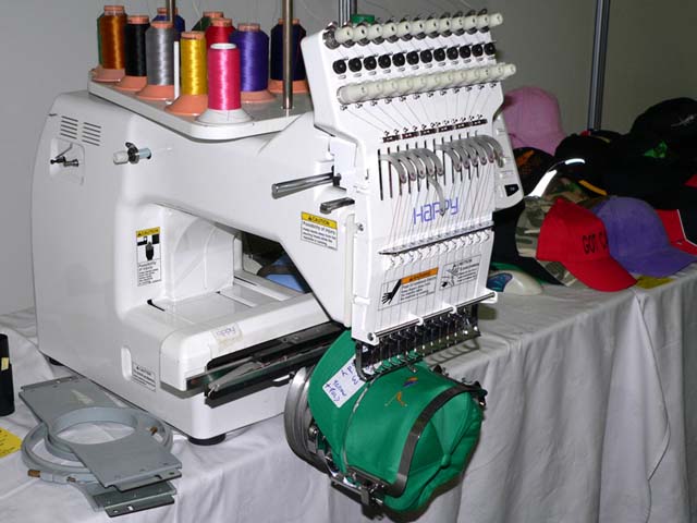 __07 Blackpool(UK) - Flight Simulator Convention - Machine sewing the "Cloudy" cap