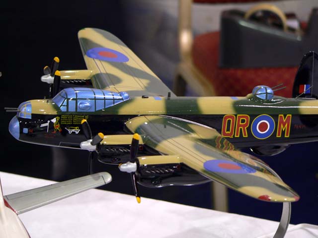 __07 Blackpool - Hand made and painted wooden model of a WWII Lancaster bomber