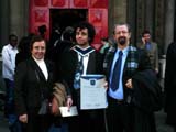 __11 American College Conferring - Betty, Ariel and Claudio on the church's entrance