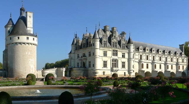 __Chenonceaux - The donjon(keep) and the château from the East gardens