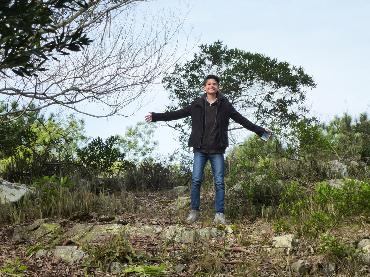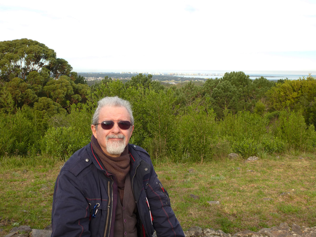 Arboreto Lussich: Punto Panoramico - Claudio con al fondo Punta del Este