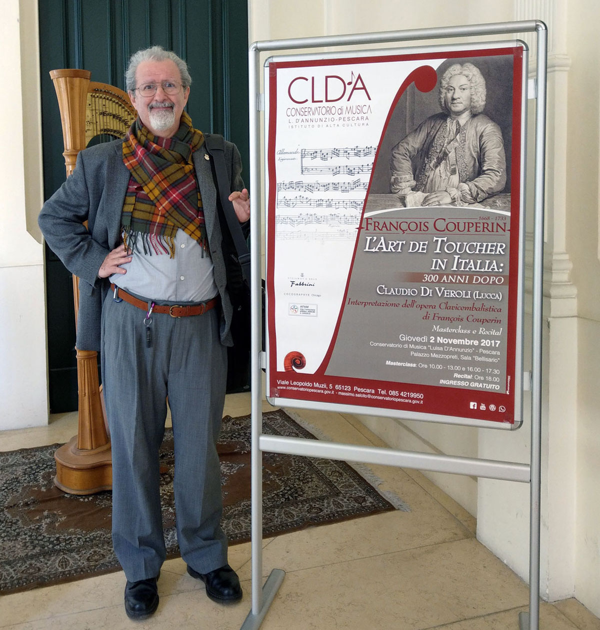 Pescara - Claudio con il poster del recital