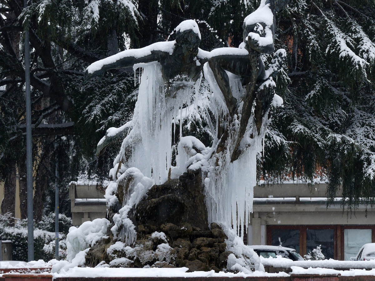 Lucca - Piazzale Italia nevicato - statua