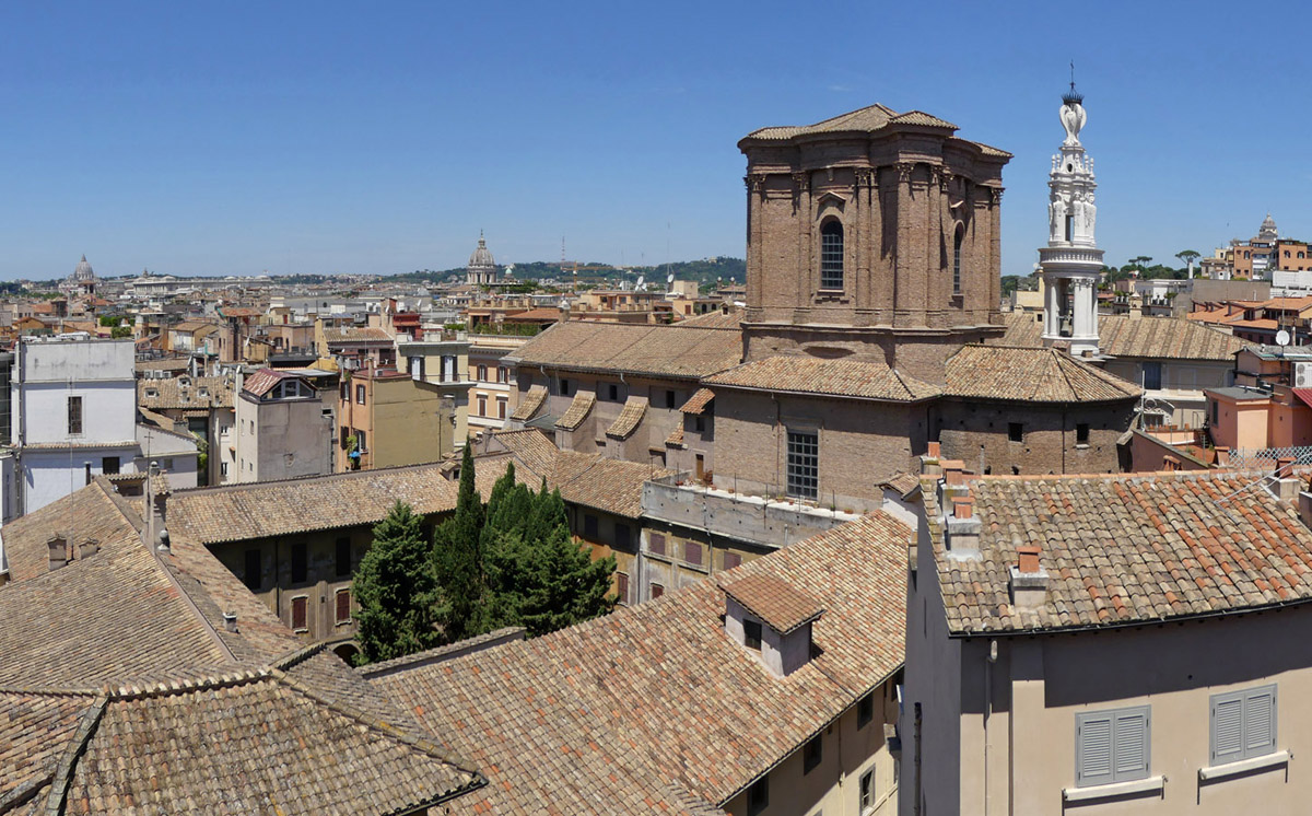 La Rinascente - terrazzo - vista con il Chiostro di Sant'Andrea delle Fratte (panorama di 2 foto)