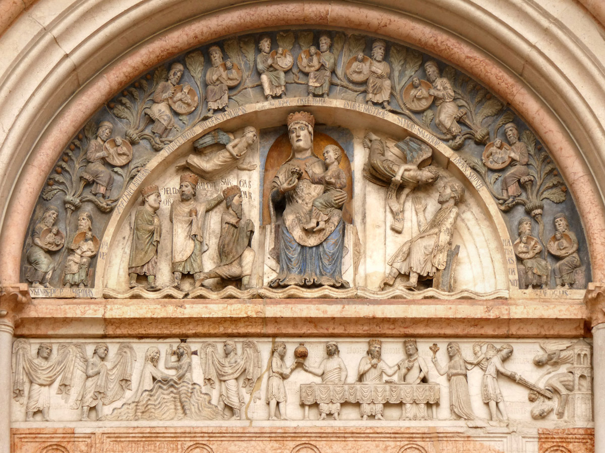 Battistero - Portale del Giudizio - sopra Opere di Misericordia